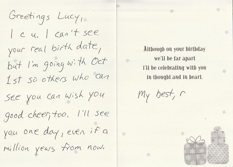 I hope you visit Her very empty FB page, https://www.facebook.com/LucyMargaretTozak/, to wish Her well, wish Her many "Happy Birthday Celebrations" when we bring Her back.