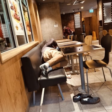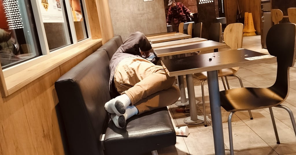But there were sleeping positions they let people get away with until morning work crowd started coming in.
